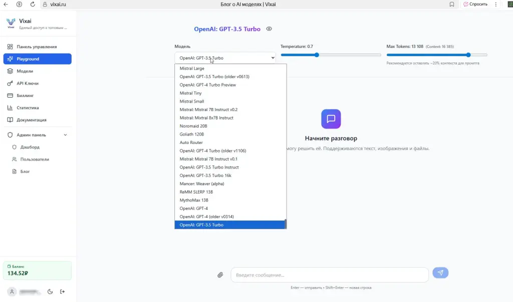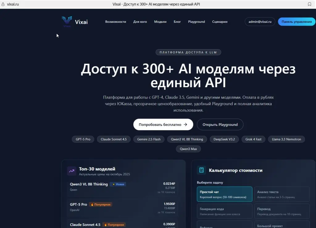 уникальная, личная разработка системы доступа к более чем 340 нейросетям, с постоянно обновляемым каталогом (онлайн). ГИбкое ценообразование оплаты за модель, контроль наценки, отдельный чат для тестирования моделей, единый API для использования.