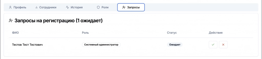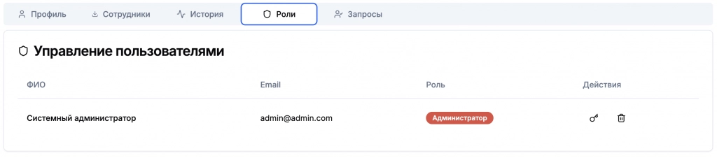 Администратор контролирует все процессы: Управление правами зарегистрированных сотрудников, создание и удаление ролей и весь функционал относящийся к приложению;