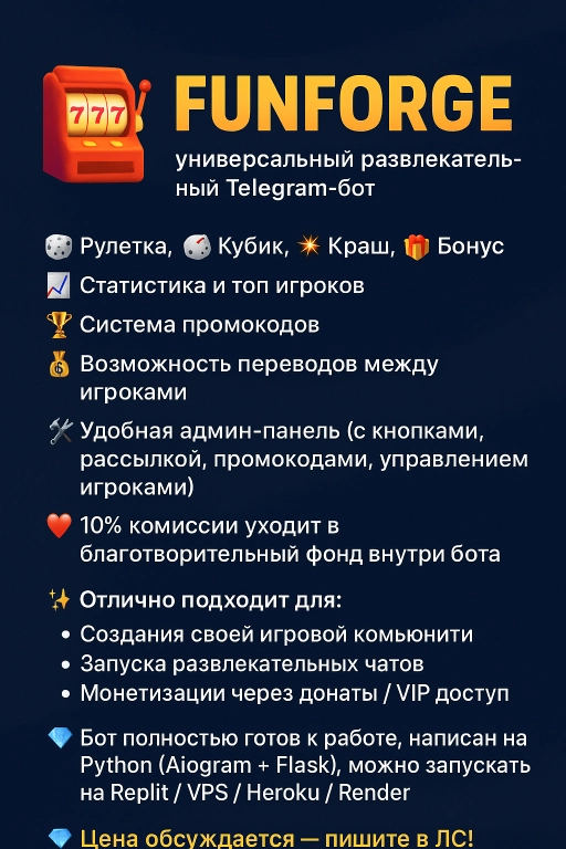 Продаётся полностью готовый развлекательный Telegram-бот в стиле мини-игры?