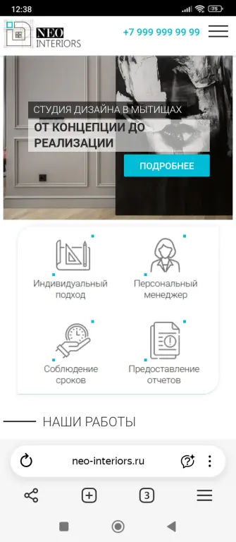 Сайт для дизайн студии на движке modx ,работает очень быстро